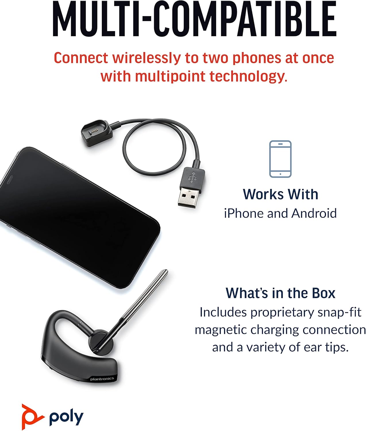 Connect seamlessly to your mobile phone or tablet via Bluetooth for hands-free convenience. The Plantronics Voyager Legend is also packaged in frustration-free packaging for easy setup and use.